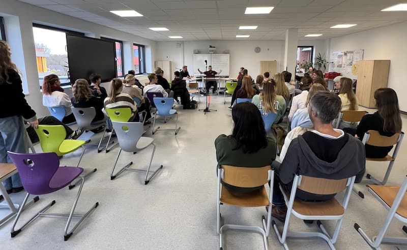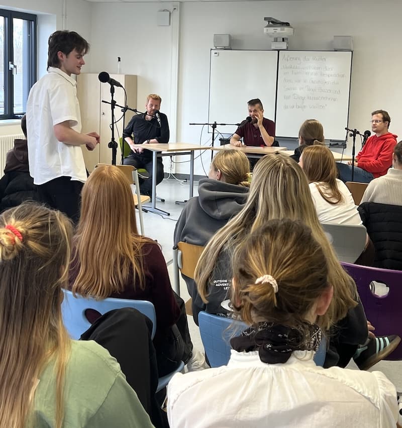 Gemeinsam mit den Podcast-Hosts Urs von Wulfen und Alexander Rolfes sowie dem KI-Experten Michael Brendel wurden aktuelle Fragen rund um den Einsatz von KI diskutiert. Die Schülerinnen und Schüler brachten sich dabei aktiv in das Gespräch ein, stellten kritische Nachfragen und gaben Einblicke in ihre eigenen Erfahrungen mit KI, etwa im schulischen Alltag. Themen wie das Outsourcen von Hausaufgaben, automatisierte Predigten oder die Frage, ob Maschinen menschliches Denken ersetzen können, wurden aus unterschiedlichen Perspektiven beleuchtet.