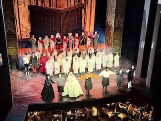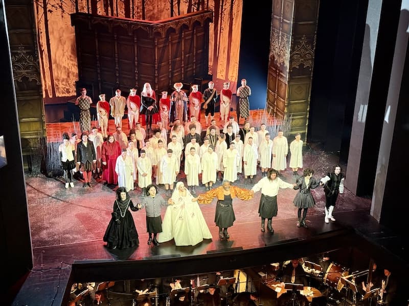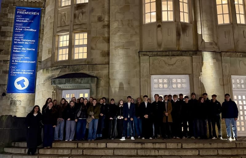 Die Fahrt diente als perfekte Einstimmung auf das Thema im ersten Halbjahr der Jahrgangsstufe 13. Doch statt staubiger Reclam-Hefte erwartete die Gruppe ein echtes Spektakel. Im Theater Osnabrück sahen wir zudem nicht nur das reine Schauspiel, sondern Giuseppe Verdis packende Opernfassung. In diesem „Opern-Thriller“ konnten die Schülerinnen und Schüler hautnah miterleben, wie: