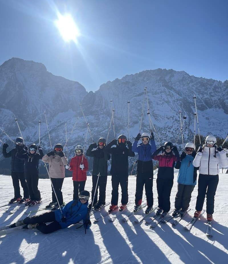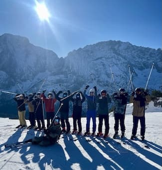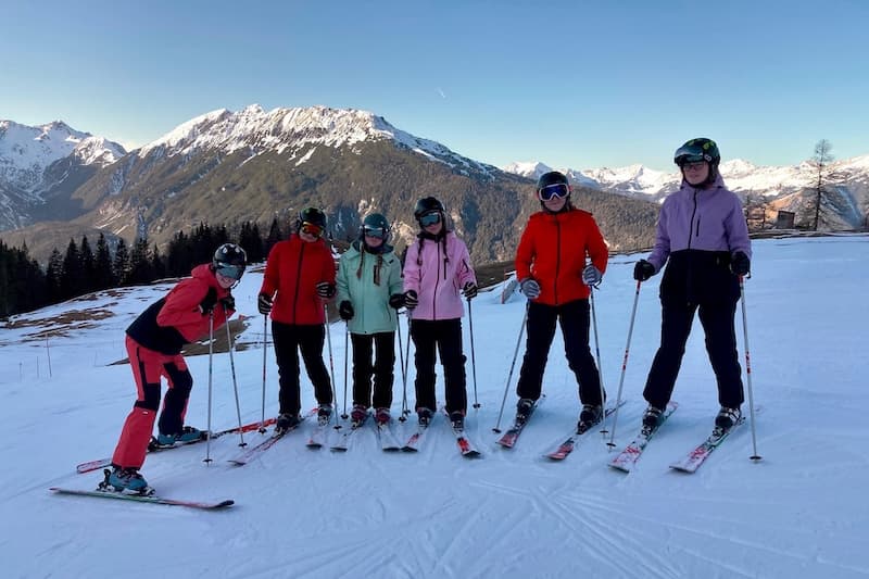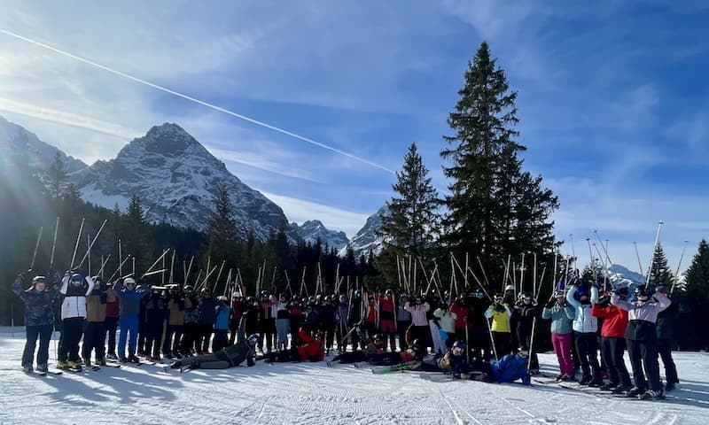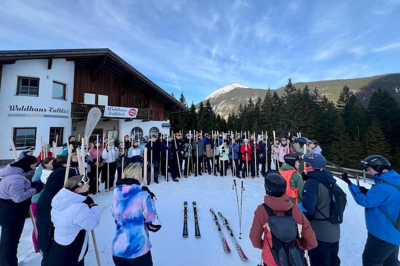 „Jugend trainiert für Olympia“ – ein Motto, das besonders in dem Jahr der olympischen Spiele in Mailand und Cortina, auch für den Jahrgang 11 gelten kann. Ende Januar machten sich 55 Schüler/innen auf den Weg an die österreichische Seite der Zugspitze, um die ersten Erfahrungen auf den „Brettern, die die Welt bedeuten (zumindest für Sportler)“ zu sammeln. Untergekommen im wunderschönen Waldhaus Talblick in Biberwier – direkt an der Piste gelegen – machten wir uns nach der Skiausleihe direkt auf den Weg auf den Anfängerhügel. Nachdem einige Kolleg/innen im letzten Jahr auf einer Lehrerfortbildung am Hintertuxer Gletscher waren, testeten wir eine neue Schulungsart, die sogenannte Ein-Ski-Methodik, die bereits nach kurzer Zeit zu ersten erfolgreichen Gleit- und Kurvenerfahrungen führte.