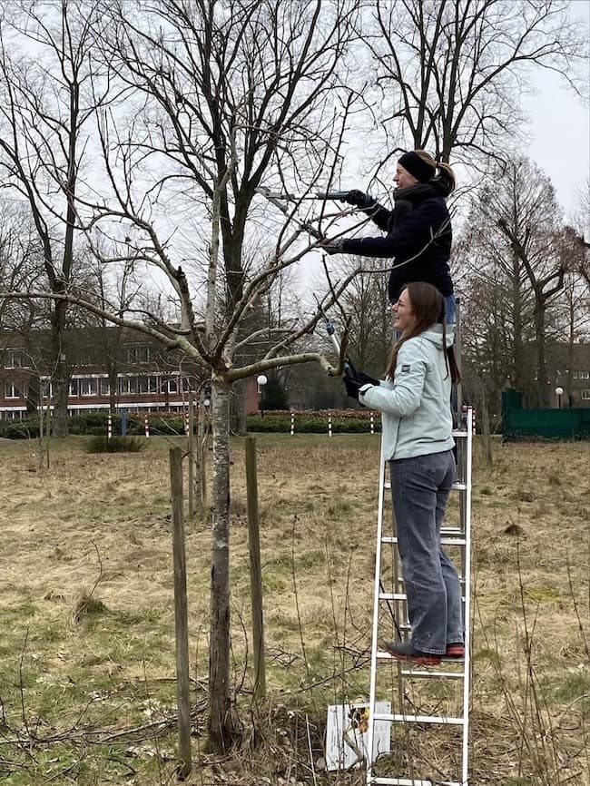 Konkret sollte z.B. durch das Entfernen von Totholz, nach innen wachsenden Trieben und sich kreuzenden Ästen die Baumgesundheit verbessert und das Risiko von Krankheiten reduziert werden. Zudem sollte der Schnitt die Belichtung der Krone optimieren und die Fruchtqualität steigern.