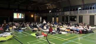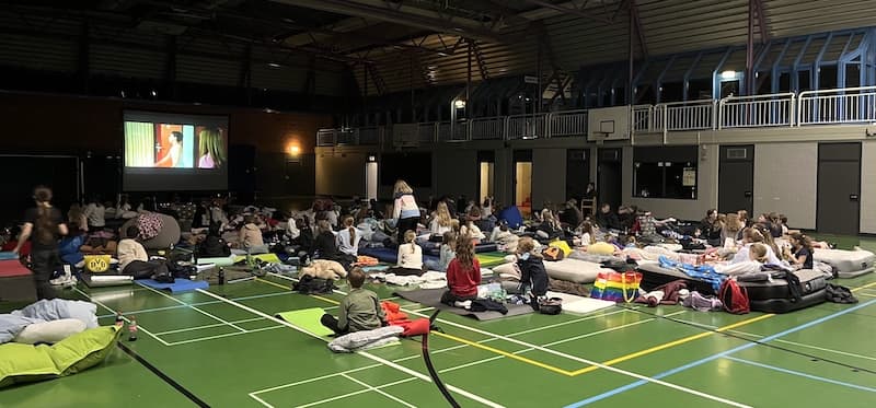 Um 19:30 Uhr begann in der Turnhalle die Filmvorführung von „Gregs Tagebuch – Böse Falle“. Die Schülerinnen und Schüler machten es sich dabei auf mitgebrachten Luftmatratzen und Isomatten gemütlich. Für die passende Kinoatmosphäre war ebenfalls gesorgt: Neben Nachos gab es in diesem Jahr erstmals auch Zuckerwatte, die auf große Nachfrage stieß. Ein besonderes Highlight war außerdem die neue Slush-Maschine. Das angebotene Slush-Eis fand enormen Andrang und sorgte für viele begeisterte Gesichter.