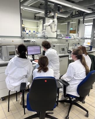 Am 27.11.2025 erhielten die beiden Chemie-Leistungskurse der Jahrgangsstufe 12 des Gymnasium Marianum Meppen gemeinsam mit ihren Lehrkräften Frau Dr. Kamps und Herrn Dr. Bojer die Gelegenheit, Uni-Luft an der Universität Münster zu schnuppern.Am Morgen trafen wir uns um 8 Uhr am Bahnhof in Meppen und fuhren mit dem Zug nach Münster, wo wir gegen 9:40 Uhr am Hauptbahnhof ankamen. Nach einer etwa 15-minütigen Busfahrt erreichten wir den Fachbereich Analytische Chemie der Universität Münster.