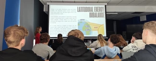 Am dritten und somit letzten Tag haben wir ebenfalls gemeinsam gefrühstückt. Nachdem wir unsere Koffer gepackt hatten, haben wir uns zu Fuß auf den Weg zur Schule gemacht, um dort in Kleingruppen zum Thema „Erneuerbare Energien“ zu arbeiten. Jeweils zwei von insgesamt sechs Gruppen haben sich mit einem konkreten Szenario zur Energieversorgung, z. B. einer Insel oder Stadt, beschäftigt und dazugehörige Aufgaben bearbeitet. Anschließend haben die Gruppen für die jeweiligen Szenarien Lösungsansätze für eine nachhaltige und umweltfreundliche Energieversorgung entwickelt und gemeinsam als Plakat ausgearbeitet. Diese wurden dann im Plenum präsentiert und kritisch diskutiert. Nach dem Vorstellen hatten wir freie Zeit, die wir uns eigenständig einteilen konnten, bevor wir uns am Busbahnhof getroffen haben und zurück nach Meppen fuhren.