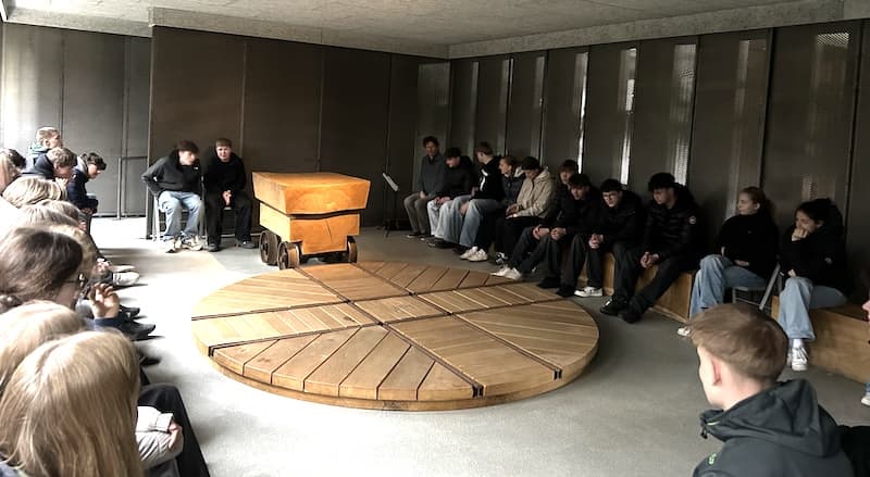 Zu Beginn haben wir einen Vortrag über die Geschichte der Lager gehört und konnten Fragen stellen, um mehr zu erfahren. Anschließend haben wir das Außengelände in verschiedenen Gruppen erkundet. Im Museum haben wir uns das Lied ,,Die Moorsoldaten“ angehört und über den Hintergrund gesprochen. Danach haben wir in kleinen Gruppen Arbeitsblätter zu verschiedenen Personen ausgefüllt, die wir später im Unterricht noch einmal besprochen haben. Zum Abschluss besuchten wir das Kloster mit drei kleinen Ausstellungsräumen. Besonders beeindruckend war der „Raum der Sprachlosigkeit“, in dem wir gemeinsam das Lied ,,Die Moorsoldaten” gesungen haben, um den Gefangenen und Verstorbenen zu gedenken.