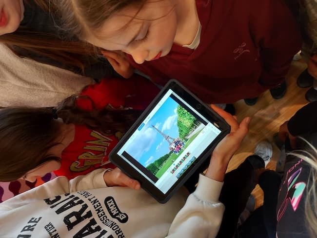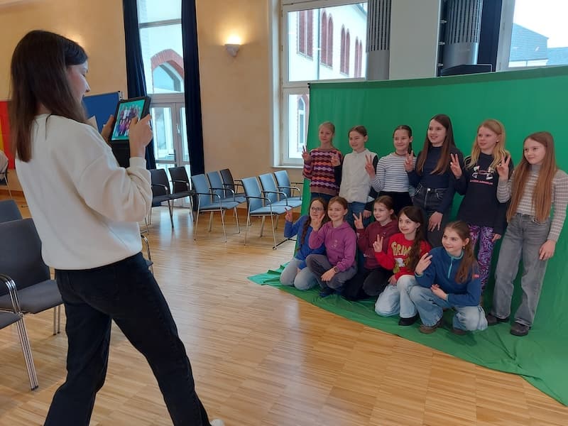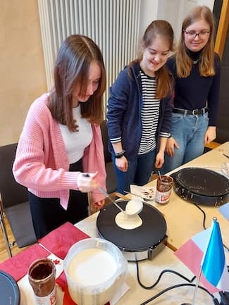 Insbesondere die jüngsten Schüler, sprich der Jahrgang 5, darf sich am Deutsch-Französischen Tag, der in diesem Jahr sein 62-jähriges Jubiläum feiert, über vielfältige Aktivitäten in der Aula freuen, in dessen Zentrum das Kennenlernen der französischen Kultur steht. Dabei entdecken die Schüler spielerisch, wie viele französische Wörter sie schon kennen, was gerade in der französischen Musikszene los ist und wie sie sich per Greenscreen ganz leicht in die französische Metropole Paris beamen lassen können. Auch ein leckeres Crêpe darf bei all dem nicht fehlen!