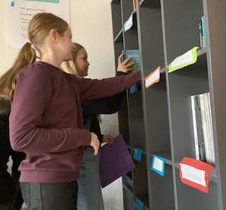 Zum Abschluss des Projekts wird es spannend: Die Kinder stellen Detektivgeschichten vor, die zum Mitdenken und Kombinieren einladen. Auf den Plakaten werden verschiedene Bücher vorgestellt und mit selbst gebastelten Lupen, geheimen Botschaften und Rätselstationen verwandelt sich die Lesetreppe in ein kleines Krimi-Labor.
