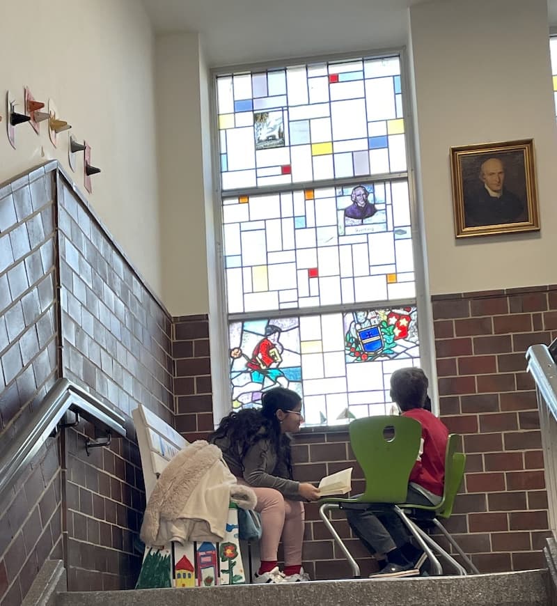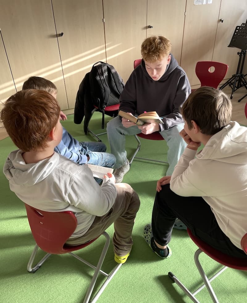 Anlässlich des bundesweiten Vorlesetags haben sich fast dreißig engagierte junge Menschen aus den Jahrgängen 10 und 12 des Marianum auf den Weg zur Overbergschule gemacht, um den Schülerinnen und Schülern der Klassen 1 bis 4 selbstgewählte Geschichten vorzulesen. Eine solche Gemeinschaftsaktion ist besonders wertvoll in einer Zeit, in der (Vor-)Lesen längst nicht mehr überall selbstverständlich ist. Und doch ist unbestritten: Geschichten schaffen Verstehen, fördern den Austausch, stärken das Miteinander und legen die Grundlage zum Lesenlernen und dem Verstehen der Welt.