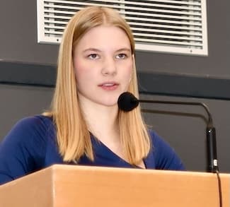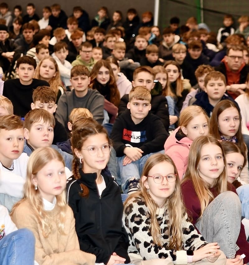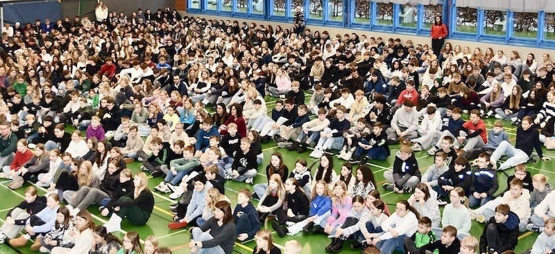 1200 Schüler:innen und knapp 100 Lehrkräfte schauen Imke gebannt zu. Es ist mucksmäuschenstill in der Turnhalle des Marianums.