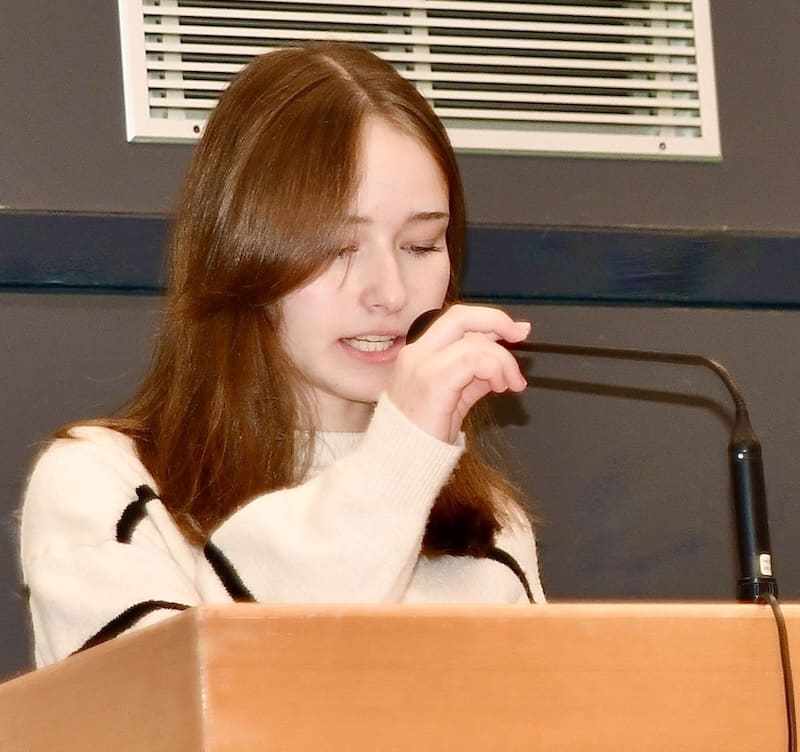 Anna-Lena, Maxime, Lena, Imke, Alicia und Constanze (alle Jahrgang 11) haben aus diesem Anlass eine Gedenkveranstaltung für die gesamte Schulgemeinschaft vorbereitet. In bewegenden Worten informiert Anna-Lena über die historischen Hintergründe. Die sechs Mädchen stellen aber eine andere Message in den Mittelpunkt: Antisemitismus und Menschenfeindlichkeit gibt es auch heute noch!