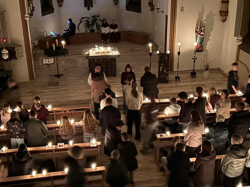 In den frühen Morgenstunden des 5. Dezember versammelten sich rund 250 Mitglieder unserer Schulgemeinschaft – Schülerinnen und Schüler, Eltern, Lehrkräfte und Mitarbeitende – zum traditionellen Rorate-Amt. Bereits um 6:15 Uhr füllte sich unsere Kapelle mit warmem Kerzenlicht und einer besonderen adventlichen Atmosphäre, die viele als wohltuende Pause im oft hektischen Dezember empfanden.