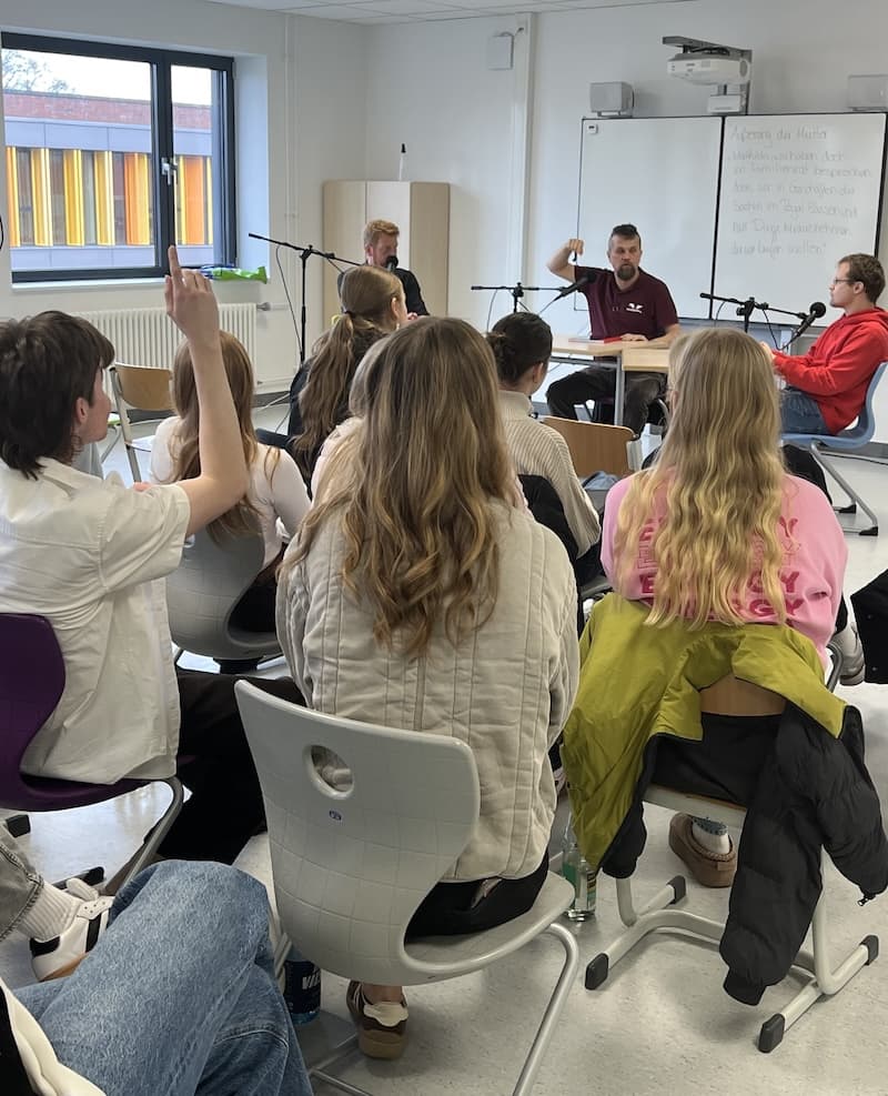 Gemeinsam mit den Podcast-Hosts Urs von Wulfen und Alexander Rolfes sowie dem KI-Experten Michael Brendel wurden aktuelle Fragen rund um den Einsatz von KI diskutiert. Die Schülerinnen und Schüler brachten sich dabei aktiv in das Gespräch ein, stellten kritische Nachfragen und gaben Einblicke in ihre eigenen Erfahrungen mit KI, etwa im schulischen Alltag. Themen wie das Outsourcen von Hausaufgaben, automatisierte Predigten oder die Frage, ob Maschinen menschliches Denken ersetzen können, wurden aus unterschiedlichen Perspektiven beleuchtet.