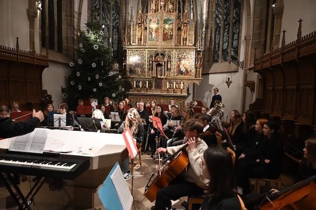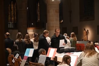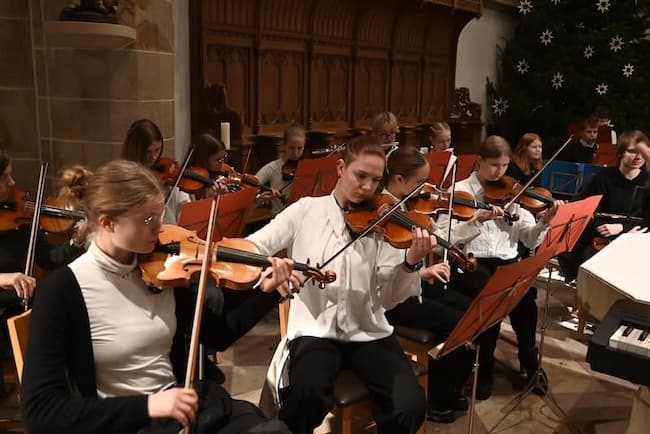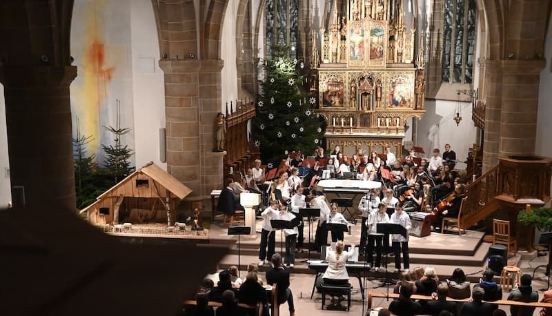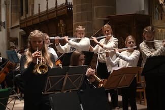 die Musikprofilkurse des Jg. 6 unter Leitung von Hr. Tenbruck und Fr. Scharnhorst, die Flöten-AG unter der Leitung von Fr. Scharnhorst, der Chor aCHORd unter der Leitung von Hr. Tenbruck, der Elternchor unter der Leitung von Fr. Lutter und das Orchester unter der Leitung von Hr. Gebbeken - in diesem Jahr mit ganz besonderer Unterstützung durch das Orchester des Mariengymnasium Papenburg unter der Leitung von Hr. Jonas Gebbeken.