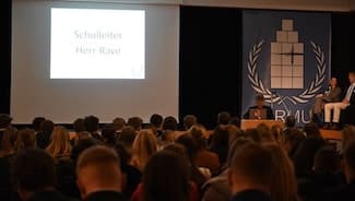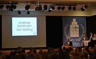 Vor der Danksagung zum Tag folgte eine Rede des Jahrgangskoordinators Herrn Weßling. Herr Weßling machte deutlich, dass es immer wieder komplexe Fragen und Unsicherheiten geben werde, jedoch der Umgang mit diesen entscheidend sei. Zum besseren Verständnis zog er das Lied „New York, Rio, Rosenheim” der Sportfreunde Stiller heran und nutzte es als Übergang, um dem 13. Jahrgang aufmunternde Worte in Hinsicht auf das bevorstehende Abitur zu übermitteln.