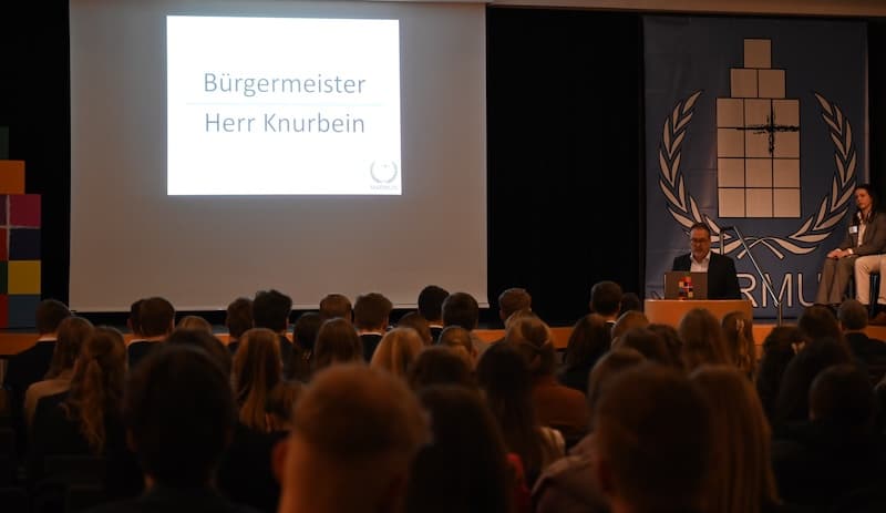 Zu Beginn der Veranstaltung sind alle Schüler zur Eröffnungsfeier in der Aula zusammengekommen. In diesem Jahr waren zusätzlich zum gesamten Jahrgang 13, Schüler des WGM und des Gymnasiums Papenburg vertreten. Eröffnet wurde die Veranstaltung durch die Präsidenten der MarMun gefolgt von einer Rede des Meppener Bürgermeisters Helmut Knurbein sowie des Schulleiters Herrn Rave. Diese Reden betonten unter anderem die Notwendigkeit von politischer Partizipation in Hinblick auf Herausforderungen, mit welchen die Welt aktuell konfrontiert ist, wie beispielsweise den Klimawandel, die Energiewende, die Wohnungsnot, Krieg und die Inflation. Um trotz all dieser Herausforderungen positiv in die Zukunft blicken zu können, sei es eine Grundvoraussetzung, sich mit den Themen unserer Zeit zu beschäftigen, um sich in der Zukunftsgestaltung engagieren zu können, betonte Herr Knurrbein.