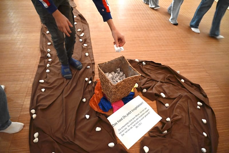 „Auf die WÜRDE. Fertig. Los!“ Ausgehend vom Motto der diesjährigen Misereor-Fastenaktion machen sich zur Zeit alle unsere Schülerinnen und Schüler in einer Raumerfahrungstour anlässlich des Aschermittwochs auf den Weg durch die Schule. Dabei setzen sie sich mit dem diesjährigen Misereor-Hungertuch auseinander, machen sich Gedanken über das Thema Menschenwürde und Kinderrechte und reflektieren für sich im Raum der Stille, was genau nun eigentlich das Thema „Asche“ mit der anstehenden Fastenzeit zu tun hat. In der Kapelle gehen sie unter anderem der Frage nach, worauf sie fasten möchten. Am Ende der Tour können sich alle frei entscheiden, ob sie auch die Fastenzeit mit dem Aschekreuz bewusst beginnen möchten.