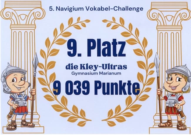 Bereits im letzten Jahr konnte die 8. Klasse von Frau Kley den 17. Platz landesweit erreichen, in diesem Jahr konnte sie ihr Ergebnis sogar steigern und belegte den 9. Platz. In beiden Fällen waren sie somit Marianums fleißigste Vokabellerner. Herzlichen Glückwunsch an die Kley-Ultras und ihre engagierte Lehrerin!