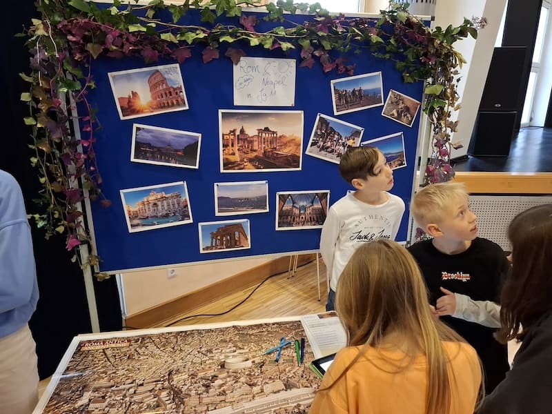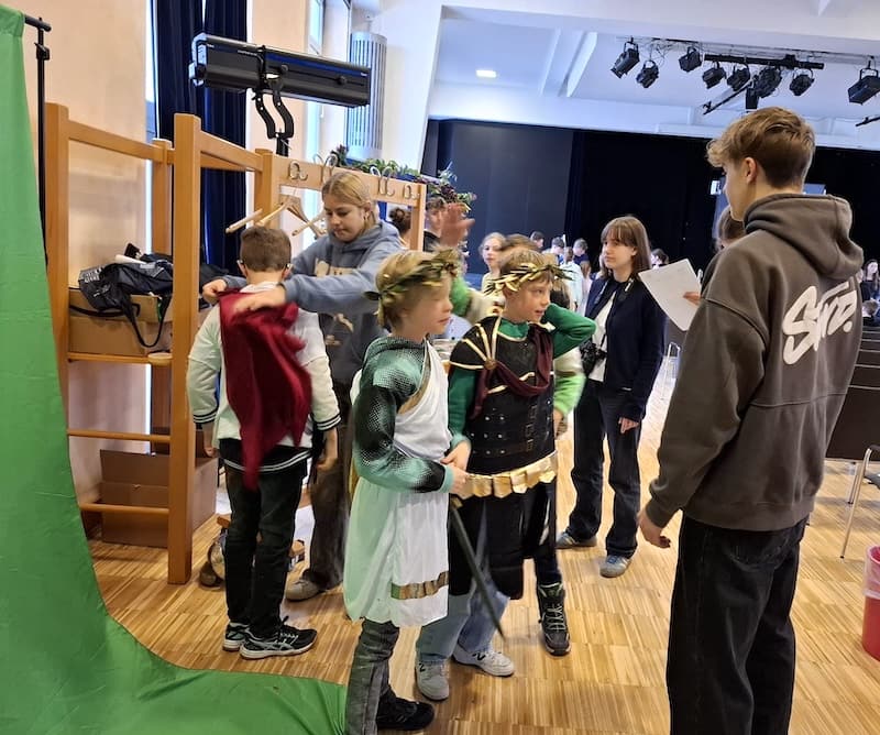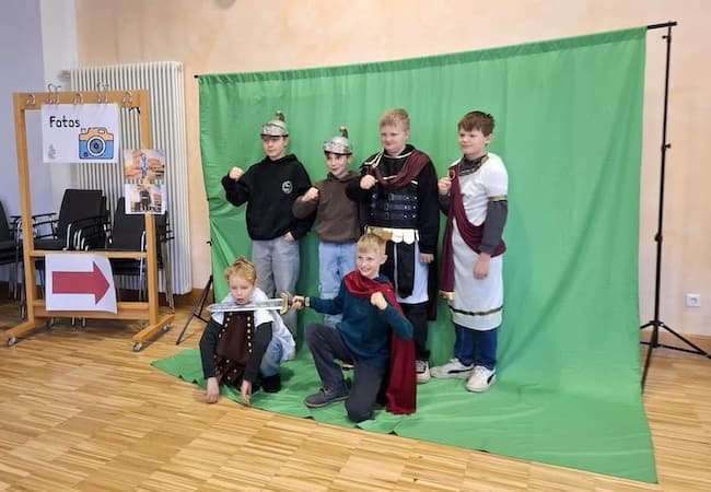 Erstmals hat am Marianum ein Lateintag für die Schülerinnen und Schüler des Jahrgangs 5 stattgefunden. An sieben spannenden Stationen konnten sie die römische Kultur und lateinischen Sprache entdecken. Ob es mythologische Geschichten, der Alltag der Römer oder das Fortbestehen der lateinischen Sprache in heutiger Werbung waren, die Begeisterung und Freude war den Schülern allerorts anzusehen. Am Ende gab es natürlich auch tolle Gruppenfotos in römischer Kleidung – ein perfekter Abschluss eines gelungenen Vormittags.
