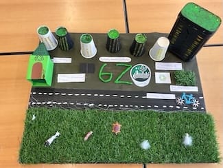 Für die Collage nutzten die Schüler:innen unterschiedliche Materialien wie zum Beispiel: alte Lebensmittelverpackungen, Perlen, Modelliermasse, Spritze, Papier/Stift, Wattestäbchen, Schlauch, Knöpfe, Taschentücher, Knete, Kakodosen, Draht, Nägel, Wattepads, Strohhalme, Holz, Lötkolben, alte Schultische, etc.