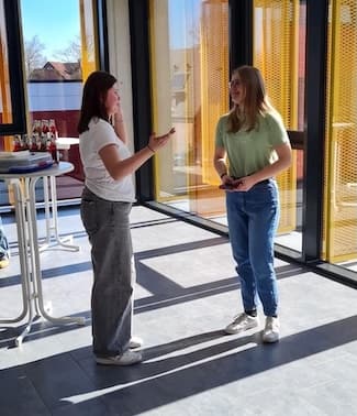 Mein erstes Gespräch war um 10:30 Uhr – und es lief leider nicht so gut. Eine Jurorin stellte mir eine Frage, die ich nicht richtig verstand. Das frustrierte mich sehr. Nach dem Gespräch brauchte ich erst einmal frische Luft. Draußen war wieder traumhaftes Wetter, und ich nutzte die Gelegenheit, mit anderen Teilnehmenden zu sprechen. Dabei kamen auch kritische Themen zur Sprache, zum Beispiel der hohe Anspruch an die Projekte.
