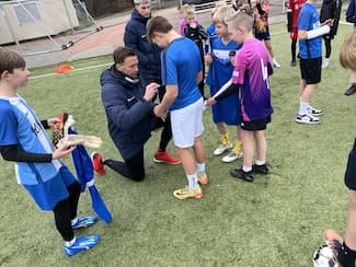 Zum Abschluss folgte ein Spiel auf eher engem Feld, das die Jungs allerdings auch aus der AG kennen. Hier präsentierten sie sich ball- und kombinationssicher und forderten Fedl und Zumdieck, die beide mitspielten, in Zweikämpfen heraus. Dass diese zum allergrößten Teil von den Idolen gewonnen wurden, war vielleicht zu erwarten, gibt unseren Jungs allerdings auch hoffentlich den Ansporn, sich weiter zu verbessern, um vielleicht irgendwann einmal den Traum vom Fußballprofi träumen zu dürfen.