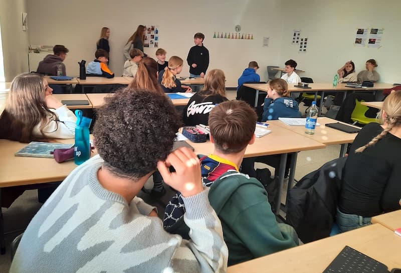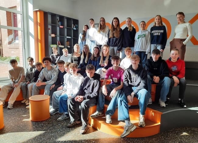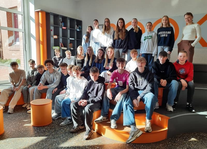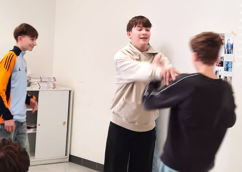 Eine ungewöhnliche Unterrichtseinheit erlebte in den vergangenen Wochen die Klasse 8a in ihrem Deutschunterricht. Die Hannoveraner Studentin Rieke Mai hospitierte Im Rahmen ihres Schulpraktikums im Deutschunterricht von Mechthild Esch-Klemme. Auf dem Programm stand die Behandlung von „Romeo und Julia“. Dabei übernahm die Studentin zeitweise den Unterricht und erarbeitete mit den Schüler:innen eine zeitgemäße Umsetzung des Shakespeare-Dramas. Die Spielszene zeigt das erste Aufeinandertreffen der verfeindeten Familien Capulet und Montague. Rieke Mai verknüpfte hierbei ihr Studienfach Darstellendes Spiel mit dem Deutschunterricht und weckte die schlummernden Schauspieltalente der Schüler:innen.