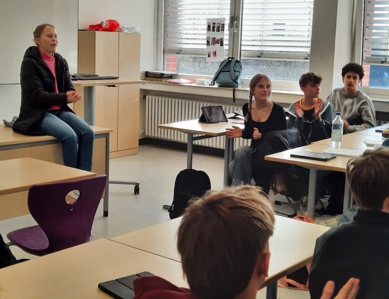 Das Experiment brachte einen Gewinn für alle Seiten: Die Schüler:innen erlebten Deutschunterricht ganz praktisch und abwechslungsreich, die Praktikantin gewann viele wichtige Erkenntnisse über ihren künftigen Beruf und sammelte unmittelbar wichtige und vielfältige Unterrichtserfahrung. Auch Mechthild Esch-Klemme nutzte die Impulse des anderen Studienfachs als Bereicherung und Anregung für die phantasievolle Sichtweise auf Lektürearbeit im Deutschunterricht. Die Erfahrungen des praktischen Unterrichtens und die Anregungen der langjährigen Fachexpertise von Mechthild Esch-Klemme beschrieb Rieke Mai abschließend als einen Mehrwert, den das rein theoretische Studium nicht biete.