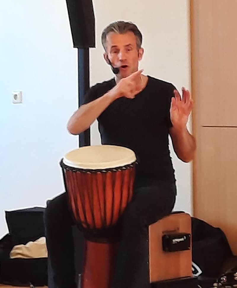Im Workshop selbst legen die SchülerInnen schnell alle Scheu ab. Matthias Philipzen, der mit seinen Kursen schon seit mehr als 25 Jahren in Europa und Amerika ein gefragter Referent ist, zieht alle Teilnehmer sofort in seinen Bann. Schon nach wenigen Erklärungen geht’s an die Praxis: Cajon aussuchen, erste Schlagübungen lernen und dann schallt es auch schon im großen Percussion-Orchester zu Pop, Rock, Hiphop und Latin-Musik durch den Musiksaal. Das Schöne an der Cajon ist, dass die Teilnehmer von Anfang an mitspielen können und unmittelbar erste Erfolgserlebnisse haben. Die musikalische Reise führt durch unterschiedliche Stile von African Drumming über Oriental bis zum Swing. Und sie vermittelt eindrucksvoll den Spaß am Musik machen in der Gruppe.