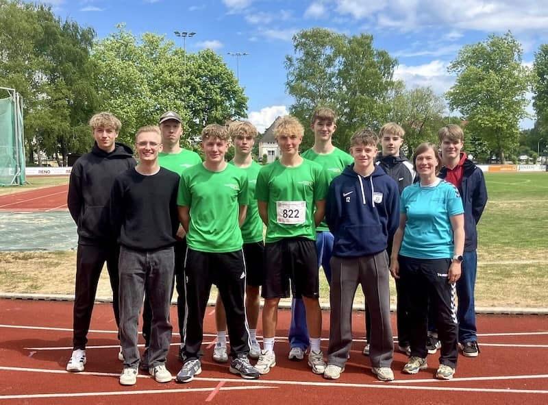 In der WK II der Jungen entwickelte sich ein spannender und sehr fairer Wettkampf mit dem Ulrichsgymnasium Norden, der Hermann Freye Gesamtschule aus Dissen, dem Copernicus Gymnasium Löningen und dem evangelischen Gymnasium Nordhorn, bei dem der Führungsabstand unseres Teams immer nur knapp war. Nach dem Kugelstoßen und vor dem abschließenden 800 m Lauf wurde es noch einmal richtig spannend, da die Punktdifferenz zum zweitplatzierten Team nur noch wenige Punkte betrug. So musste das Team die deutliche Überlegenheit der Nordener und Dissener im Kugelstoßen anerkennen. Mit einer starken Ausdauerleistung retteten Tom Albers, Jan Mörker und Leonard Gels den Sieg über die Ziellinie und konnten sogar noch ein paar Punkte zwischen ihr Team und das Team aus Nordhorn bringen. Nach der Bundesfinalteilnahme im vergangenen Jahr konnte sich das Team also erneut für den Landesentscheid qualifizieren.