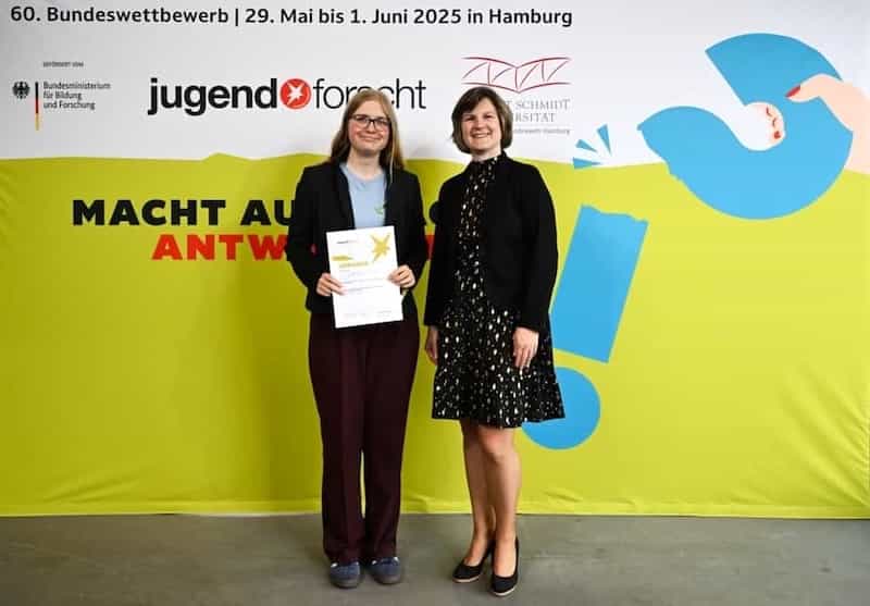 Ich bin unglaublich stolz, am 60. Bundeswettbewerb von Jugend forscht teilgenommen und sogar einen Sonderpreis erhalten zu haben. Mein großer Dank gilt meinen Projektbetreuern, die mich in allen Phasen unterstützt haben – in Momenten des Zweifelns genauso wie in den Momenten des Erfolgs. Jetzt bin ich offiziell Bundespreisträgerin – und motivierter denn je, mein Projekt weiterzuführen und im nächsten Jahr erneut anzutreten!