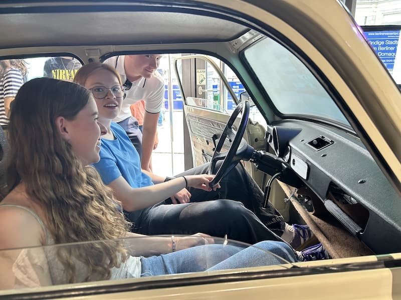 Am Vormittag erkunden die Schüler:innen wesentliche Sehenswürdigkeiten Berlins selbstständig in einer Stadtrallye, die über die App „Action Bound“ läuft. Dabei müssen sowohl kreative Aufgaben (u.a. Interview mit einem „echten Berliner“, historische Szene vor dem Stadtschloss drehen) als auch Quizfragen bewältigt werden. Ganz nebenbei bekommt die Gruppe ein Gefühl für Berlin.