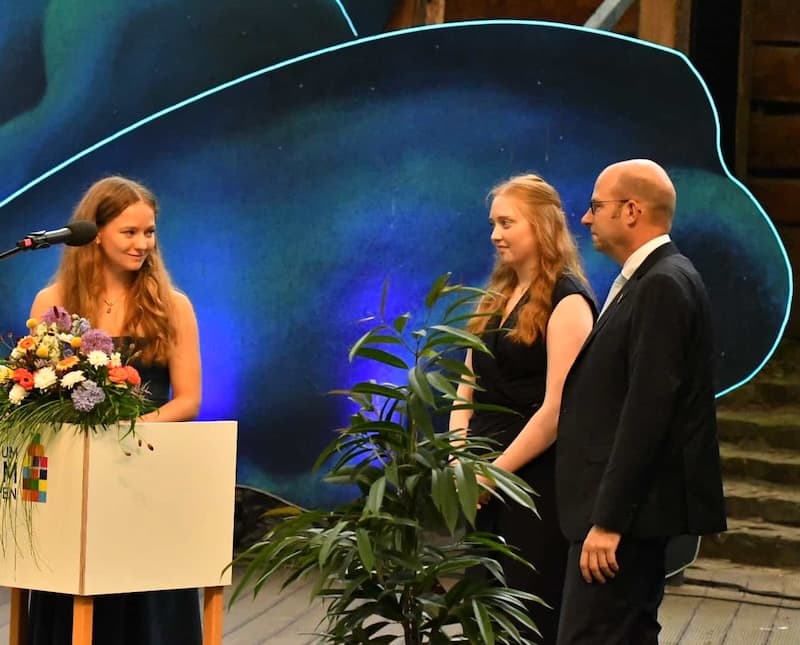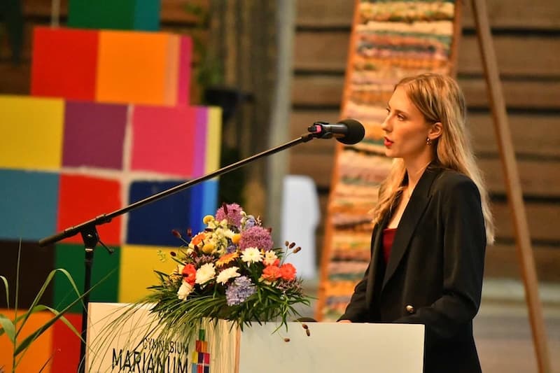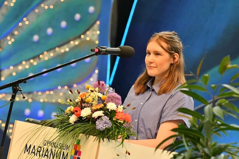 Nach einem mitreißenden Poetry Slam von Rebekka Meyer und nur unterbrochen von einem eigens komponierten Marianum-Abschlusslied des Eltern-Lehrer-Chors wurden den Abiturientinnen und Abiturienten die lang ersehnten Abschlusszeugnisse überreicht. In vielen Fällen wurde das Abizeugnis „garniert“ mit zusätzlichen Auszeichnungen: (Online-)Stipendien, besondere Anerkennungen aus der Schulstiftung und vom Ehemaligenverein, Gratulationen und Mitgliedschaften der Dt. Gesellschaften für Physik, Chemie und Mathematik, MINT-Zertifikate, Ehrungen des Altphilologenverbandes Niedersachsen und des Dt. Historikerverbandes, Preise der VdF (Vereinigung der Französischlehrerinnen und -lehrer), CAE-Zertifikate, AS-Level-Prüfungen der Universität Cambridge sowie Ehrungen des besonderen Engagements für die Schulgemeinschaft im Sport, Sanitätsdienst, Schulorchester, Mittel- und Oberstufenchor oder bei den Zweitzeugen belegen die außerordentlich breit gefächerten Begabungen und Interessen des diesjährigen Abschlussjahrgangs.