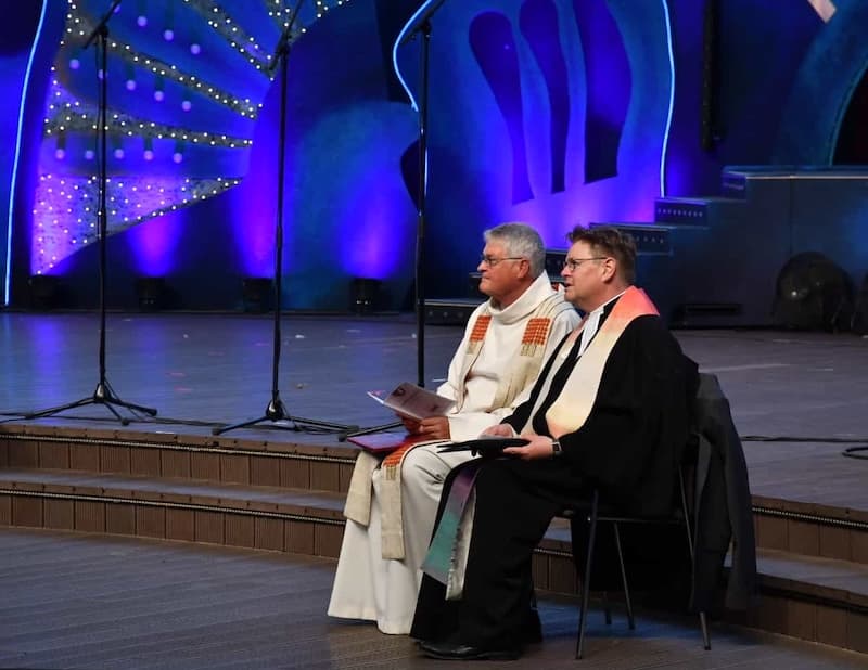 Den Beginn der Entlassfeier markierte ein von Pastor Jacobs und Pfarrer Bültel geleiteter Abschlussgottesdienst zum Leitthema „I Have a Dream“ – einem ABBA-Song und angelehnt an das Motto des diesjährigen Abijahrgangs. In seiner Mut und Lust aufs Leben machenden Predigt schloss Pfarrer Bültel daran an: Gehe es aktuell für die jungen Absolventen verständlicherweise darum, „Leben und Leichtigkeit zu genießen“, spielten schon bald auch tiefergehende Gedanken eine Rolle. „Was ist euer persönlicher Lebenstraum, der euch durch die Wirklichkeit trägt?“, ging die Frage an die Anwesenden – gepaart mit der Forderung, Verantwortung für sich selbst und alle anderen Menschen zu übernehmen. Als Leitlinie für diese große Aufgabe könnten – „auf den ersten Blick altbacken, aber heute doch aktueller denn je“ – die 10 Gebote herhalten, die nicht zuletzt geprägt seien von den Werten des Respekts und der Toleranz, anderen und sich selbst gegenüber.